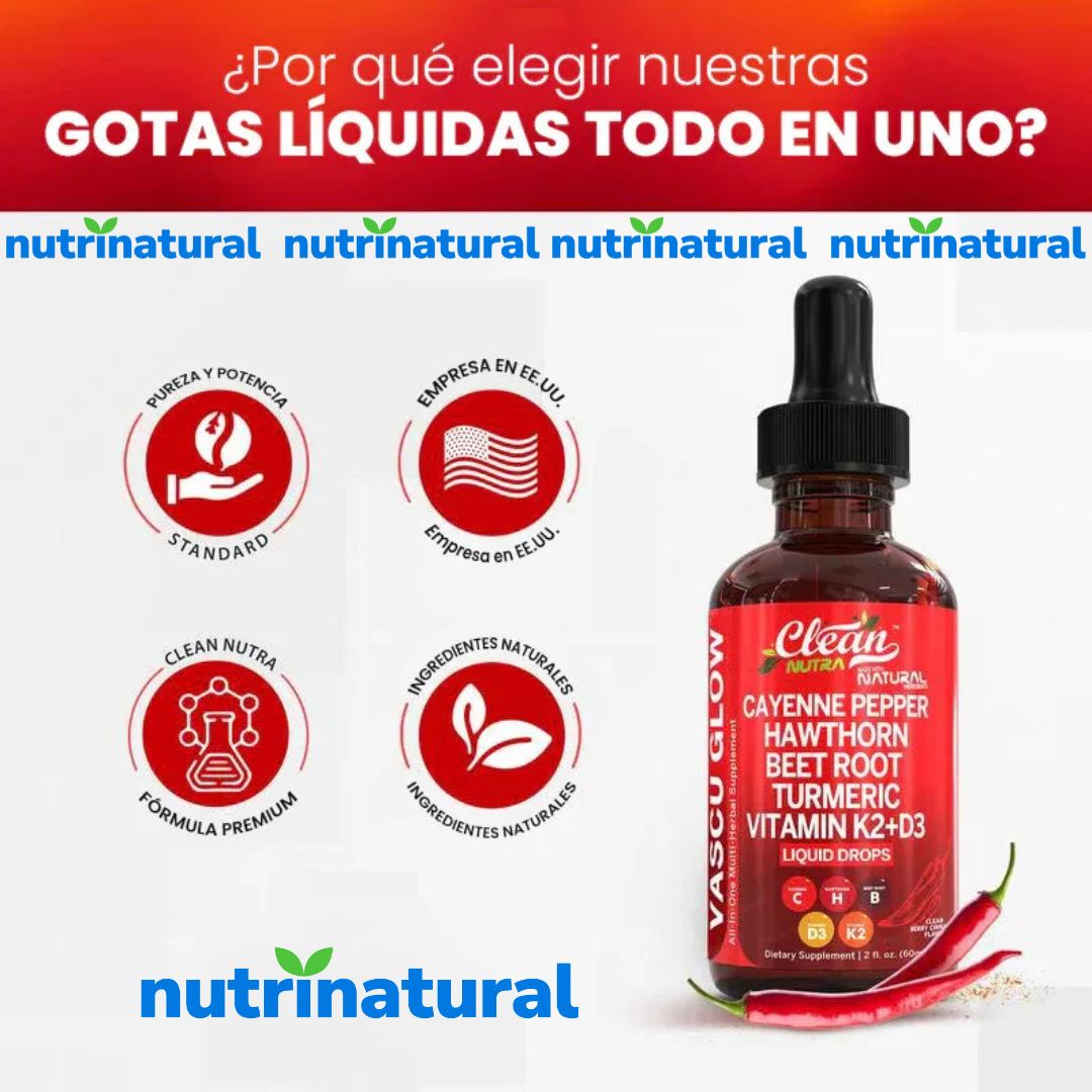 Activa tu circulación y equilibra tu glucosa de forma natural con Vascu Glow, la fórmula líquida 11 en 1 que combina cayena, remolacha, cúrcuma y vitaminas K2 + D3 para fortalecer tu corazón, mejorar tu energía y mantener una presión saludable.